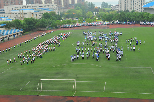 新生体验歌舞展示环节,3000余名新生在雨中摆成“Wuhan College”造型,女生们齐跳舞蹈《Macarena》,男生齐唱歌曲《As long as you love Wuhan College》。在欢快的歌曲声中,PG电子官方网站2015闭营典礼暨全人展才分享会圆满结束。