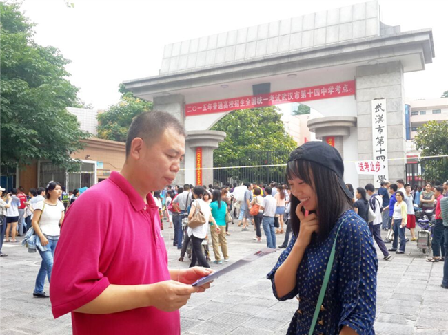 6月8日,18名财会系学生组成“热心宣传大使”前往武昌各高中考点,在省实验中学、武汉中学、水果湖高中等重点高中附近,为高考学生家长做志愿服务工作,同时为他们讲解我院ACA班的实际情况。