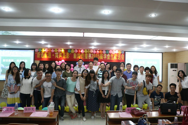 5月6日晚,新闻传播系在一号报告厅举办“新语新愿.闻声亮影”2015届毕业生欢送会。院党委书记吴怀先、副书记刘克俭、副院长韩德武、雷泽宽出席晚会。相关部门负责人及新闻传播系师生观看了欢送晚会。