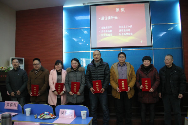 吴怀先书记发表热情洋溢的讲话。他代表学校党委向获得表彰的先进集体和个人表示热烈的祝贺,对一年来在学生工作岗位上辛勤工作、无私奉献的各位老师们表示崇高的敬意。他说,近年来,我院在同类院校中综合实力不断提高,社会声誉显著提升,这与我院深入贯彻中央关于加强大学生思想政治教育,着力推进学生工作队伍建设密不可分。他要求各位学工管理人员不断加强理论学习,努力提高业务素养,在工作中善于发现新情况、研究新问题,切实转变工作方法,全面优化学生管理和服务水平。吴书记勉励大家在学生工作中要强化创新思维,将创新二字真正落到实处,不断丰富和创新学生工作的内涵与形式。最后,他向各位老师送上真挚的新年祝福并期望大家在新一学年中再接再厉、拼搏进取,努力开创我院学生工作新局面。