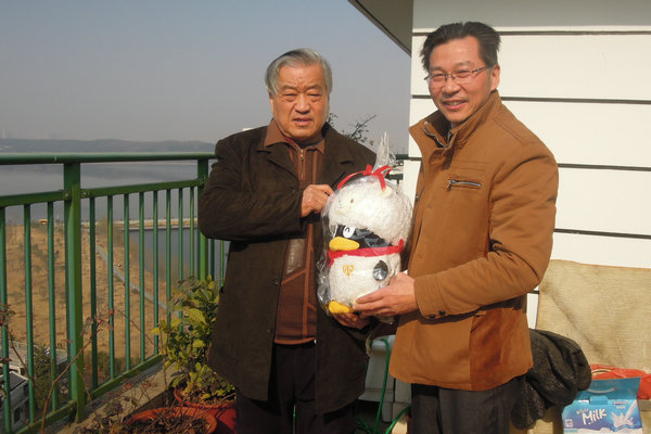 郭道扬教授接收我院送上的腾讯QQ版美羊羊新年礼物(摄影:罗建)