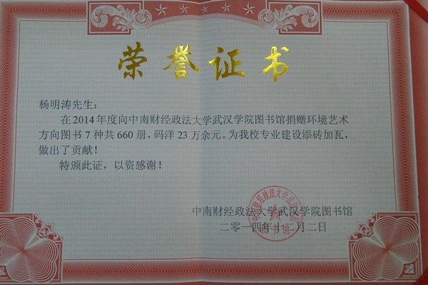 学院为杨明涛先生颁发的荣誉证书(摄影:刘思伶)