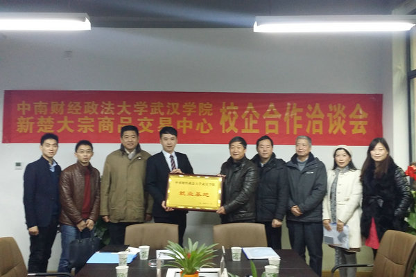 12月29日,我院与新楚大宗商品交易中心校企合作签约仪式在武昌区阳光大厦4楼举行。副院长韩德武和新楚大宗商品交易中心张总共同签订了校企合作协议书。我院向新楚大宗商品交易中心授予“中南财经政法大学PG电子官方网站就业基地”牌匾。