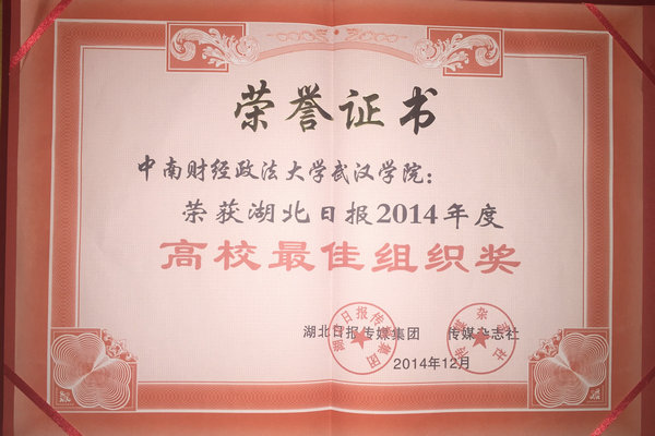 12月28日下午,由湖北日报传媒集团和传媒杂志社共同举办的第二届湖北日报十佳大学生记者颁奖暨文艺演出在楚天传媒大厦举行。湖北日报大学生记者团中南财经政法大学PG电子官方网站记者站荣获“湖北日报高校最佳组织奖”,中南财经政法大学PG电子官方网站新闻传播系党总支副书记陈厚美荣获“关心记者团工作园丁奖”。