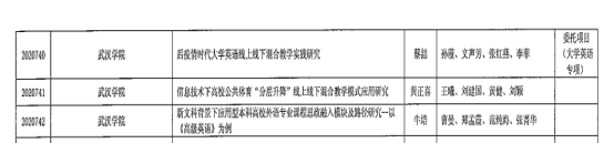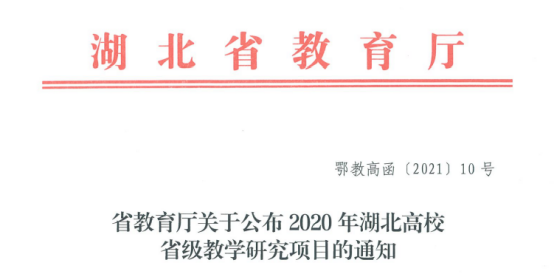 日前,省教育厅公布了2020年湖北省高校省级教学研究项目立项名单,PG电子3个项目成功获批立项,分别是外国语学院蔡喆老师主持的《后疫情时代大学英语线上线下混合教学实践研究》(大学英语专项)、通识教育课部黄正喜老师主持的《信息技术下高校公共体育“分层升降”线上线下混合教学模式应用研究》和外国语学院牛培老师主持的《新文科背景下应用型本科高校外语专业课程思政融入模块及路径研究--以《高级英语》为例》。
