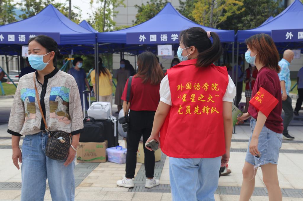 清晨6点,火车站、汽车站的接站志愿者就从学校出发。校内工作人员也是早早守候在各处迎新点,安保人员严守门禁,在志愿者的配合下检查核酸结果、返校申请、健康码。