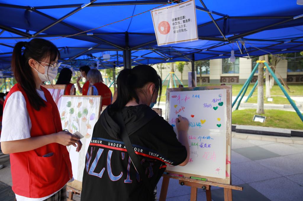 艺术与传媒学院利用自己的专业所长,将画板搬到迎新现场,让萌新们写寄语、签名、印手印,为自己的大学生活开启一道彩色的大门。