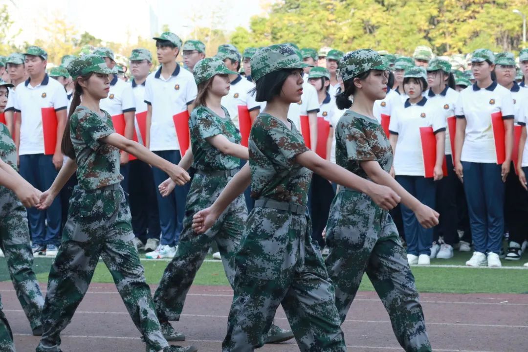 在鼓舞人心的《分列式进行曲》伴奏声中,学生军训团组成了10个方阵,跟随国旗、校旗、军训团团旗,依次正步走过观礼台。他们用整齐的步伐、嘹亮的口号和积极向上的精神风貌赢得了观礼台上领导和师生的阵阵掌声。