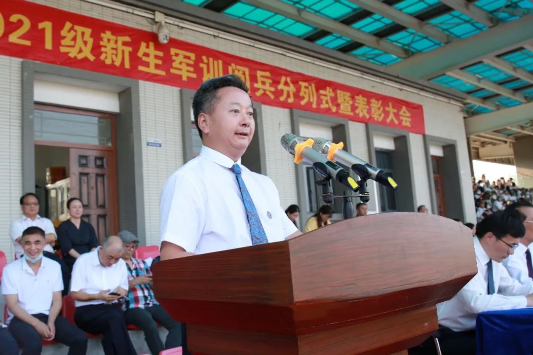 陈祖亮强调,大学四年是同学们人生最美好的年华,也是拔节孕穗的最关键性时期。希望同学们从百年党史中汲取经验、智慧和力量,进一步坚定“四个自信”,做到“两个维护”,认真践行“明德创新,解行并进”的校训精神,进一步发扬和拓展军训的成果,德智体美劳全面发展,为担当民族复兴大任铸造坚实的基础.