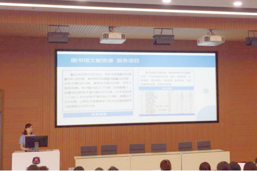 首先,图书馆馆长温爱莲结合专业特色,为外国学院的老师们介绍如何利用图书馆外文资源,从外文图书的藏书资源量、如何利用图书馆网站查阅各类外文纸质版图书、电子图书、期刊,如何向图书馆推荐自己想要的图书资料等方面进行了介绍,让老师们全面了解了图书馆提供的服务和资源。同时,温馆长重点介绍了图书馆二楼红色图书专区:“光辉的历程—庆祝中国共产党建党100周年”主题图书展区,这也是为师生们进行党史学习教育提供的有营养、有品位的读书盛宴和文化大餐。