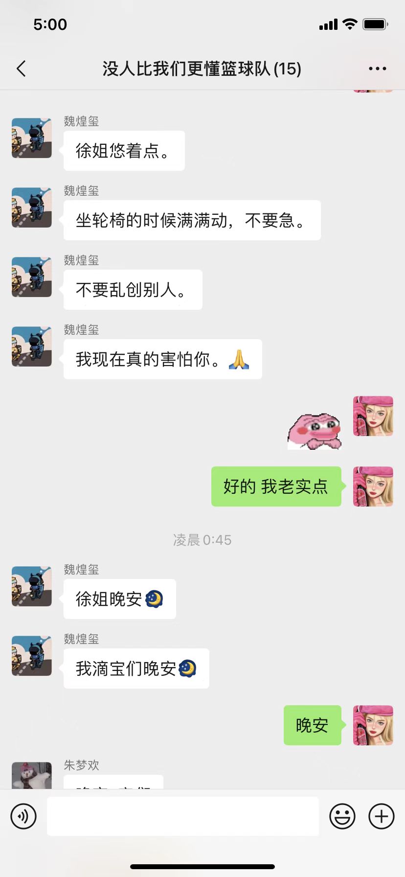 4月1日备战校园春季运动会的篮球训练中,徐晓敏不慎扭伤膝盖,重重落在地上,在众人的惊呼中,队长魏煌玺快步走来,示意她不要起身,抬高腿,避免受伤的患肢负重,进行了避免二次伤害简单地处理后,身旁的队友们也纷纷忙活起来。叫医务室医生、买冰块、去校门口迎救护车,一瞬间,本来还聚拢在一起观察徐晓敏伤情的队友们一下子散去。徐晓敏的室友三人也闻讯赶来送上去医院的必需生活用品。剩下没“抢到任务”的伙伴们也在身旁陪徐晓敏聊起了天,疼痛和沮丧一下子被欢声笑语代替。