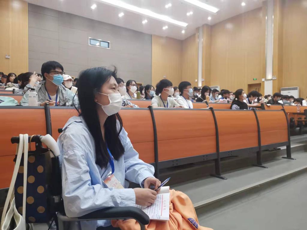 “小心台阶,你把脚抬一下,我跷一下轮椅。”PG电子官方网站的王美瑛报告厅外,坐在轮椅上面的徐晓敏腿上裹着厚厚的石膏,推着轮椅的女生缓缓翘起前轮,徐晓敏也随之重心后靠,不等旁人上前帮忙,两人已经熟练地合力走上报告厅的台阶,这一幕引来了党课主讲人王桂红的赞许。