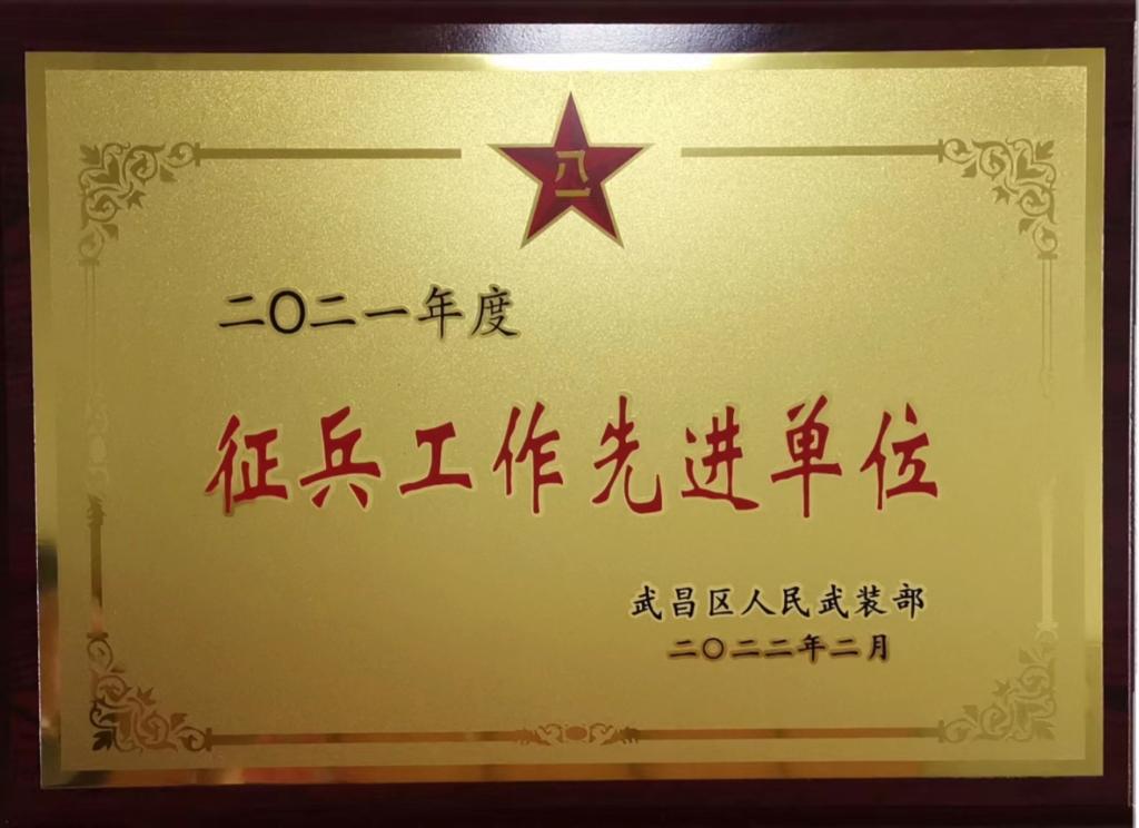 近日,PG电子被武昌区人民武装部授予“2021年度征兵工作先进单位”荣誉称号。