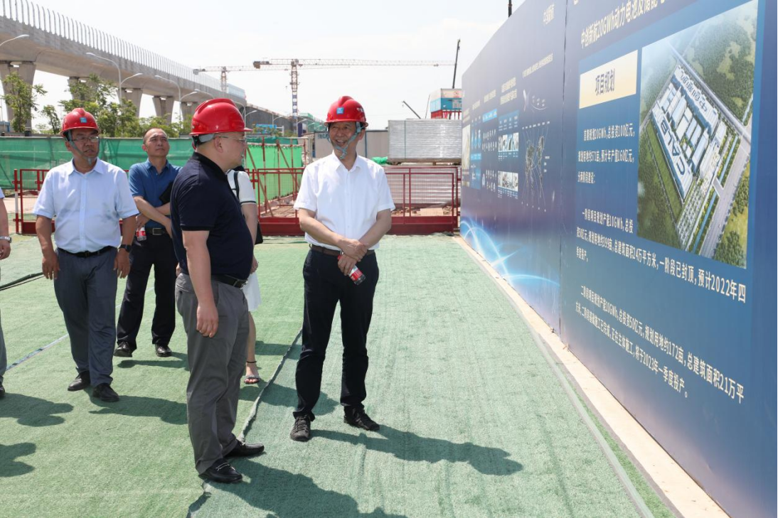 李忠云一行首先参观了小鹏汽车项目部、中创新航动力及储能电池项目部及通航产业园沙盘。接着在通航产业园区会议室召开了座谈会。