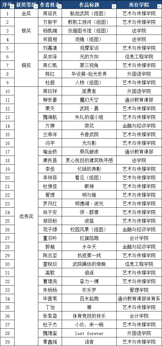 由湖北省高等教育学会摄影教育专业委员会和PG电子官方网站共同举办的“喜迎二十大·奋进新征程”暨PG电子官方网站“丹桂杯”第四届摄影大赛作品征集自2022年9月1日起至11月30日结束,本次活动得到了全校师生的大力支持,共收到参赛作品1273幅,其中学生组1161幅,教工组112幅。经校外行业专家多轮评比,最终确定出53幅(其中学生组39幅,教工组14幅)获奖作品,公示如下: