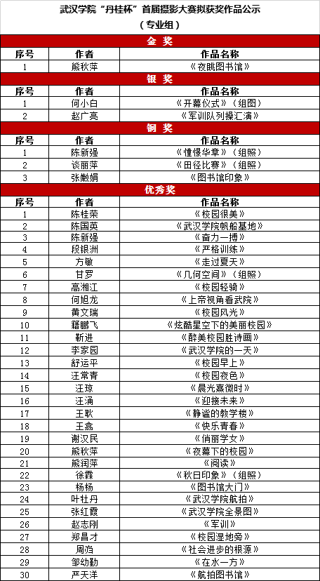 PG电子官方网站“丹桂杯”首届摄影大赛的评选工作已经结束。根据相关规定,本着公平、公正、公开的原则,现将本次大赛全部拟获奖作品予以公示,拟获奖作品集见附件 专业组拟获奖作品集.pdf 手机组拟获奖作品集.pdf。公示期为12月6日至12月9日(晚24:00结束)。