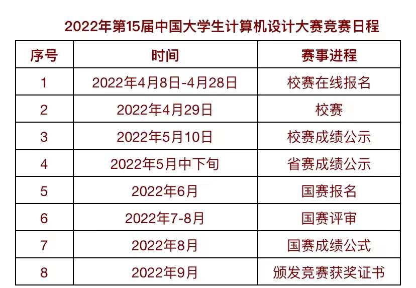 第15届中国大学生计算机设计大赛各阶段日程安排见附件1。