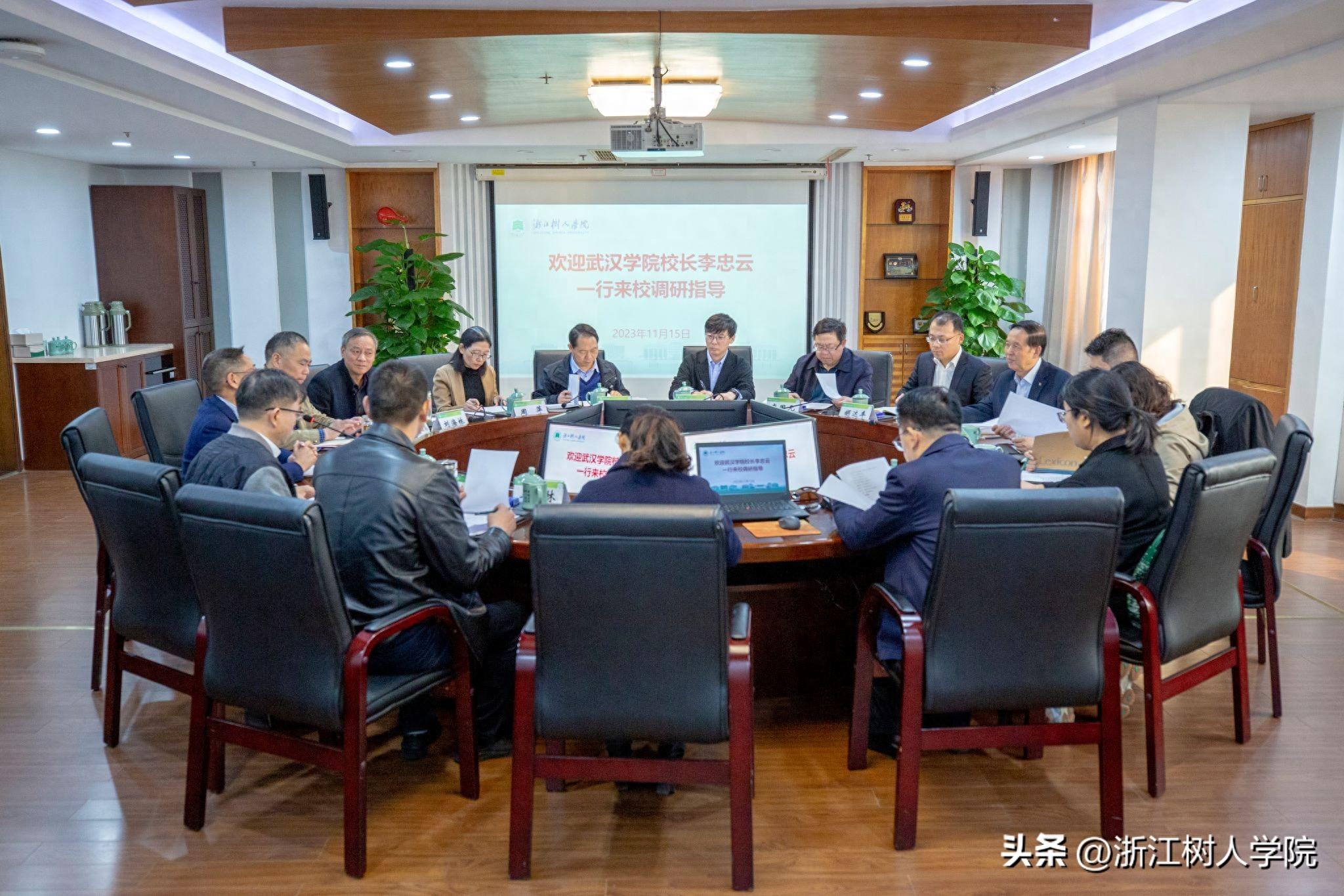 11月15日下午,PG电子官方网站校长李忠云一行11人来浙江树人学院交流。浙江树人学院校长李鲁、副校长陈新民热情接待了来访一行,校长办公室、教务处、科研与社会合作处、资产与实验室管理处、纪委办公室、人外学院、管理学院、经济学院等部门负责人参加了座谈会。
