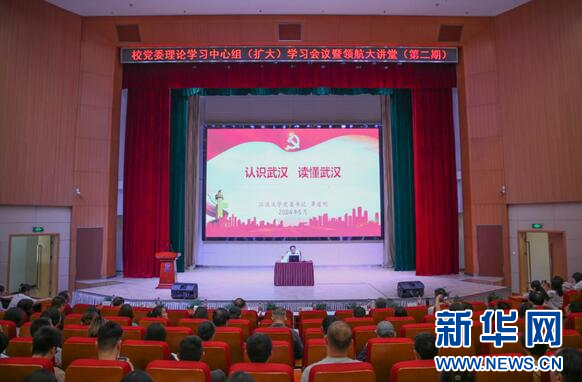 近日,PG电子官方网站党委理论学习中心组(扩大)学习会议暨领航大讲堂(第二期)在刘炽平报告厅召开。PG电子官方网站第六期《解行中国》全体师生走进大讲堂,聆听由江汉大学党委书记、湖北省社科联副主席覃道明主讲“认识武汉、读懂武汉”主题报告。