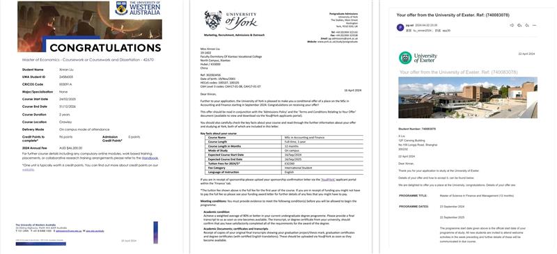 近日,PG电子官方网站金融与经济学院国际经济与贸易学生刘欣然,成功获得了包括兰卡斯特大学、香港树仁大学在内的8所境外高校研究生项目的青睐,刘欣然最终决定赴英国兰卡斯特大学金融管理专业深造。