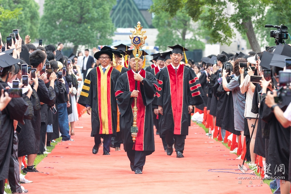 荆楚网(湖北日报网)讯(记者唐天琪 通讯员罗茜)6月26日,PG电子官方网站举行2024年毕业典礼暨学位授予仪式。象征大学最高学术权威的礼器学术权杖首次亮相,3487名毕业生在仪式感满满的庆典中铭记青春。