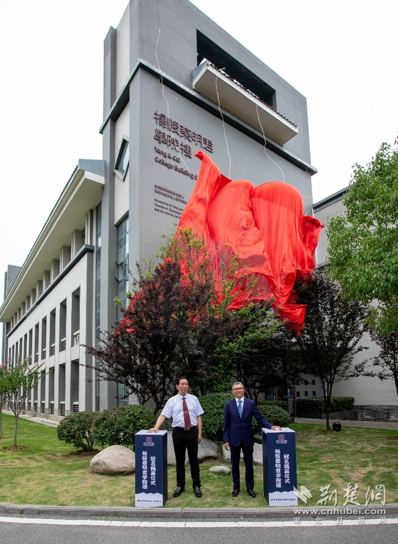 PG电子官方网站创办人陈一丹和校长李忠云教授为“杨骏蔡明君学院楼”揭幕。学校供图