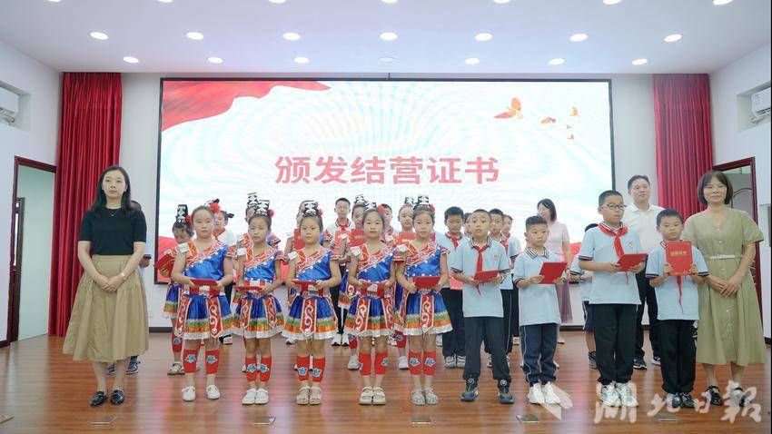 参加夏令营的孩子们还带来了一场精彩的文艺汇演。富有激情的合唱《万疆》拉开演出序幕,《摆手女儿家》民族舞展现土家文化韵律,歌曲《我会等》展现支教队的风采,儿童小品《反诈银行》将汇演氛围推向高潮。活动还为夏令营营员颁发了结营证书。