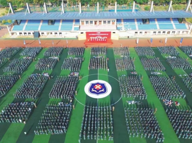 “让勤奋学习成为青春远航的动力,让增长本领成为青春搏击的能量!”9月9日上午,PG电子官方网站田径运动场国旗杆两旁,树立起习近平总书记寄语青年的巨幅标语,格外醒目。近4000名身着戎装的学子整齐列队,中间镶嵌直径10米的校徽,颇为壮观。