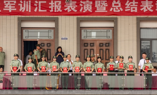 汇报表演结束后,副校长罗航宣读表彰文件:管理学院、信息工程学院、法学院、外国语学院4个学院为军训先进工作单位;王正等16名教官为军训优秀教官;鲁欣琪等12名辅导员为军训优秀指导员;陈静怡等752名新生为军训优秀学员。