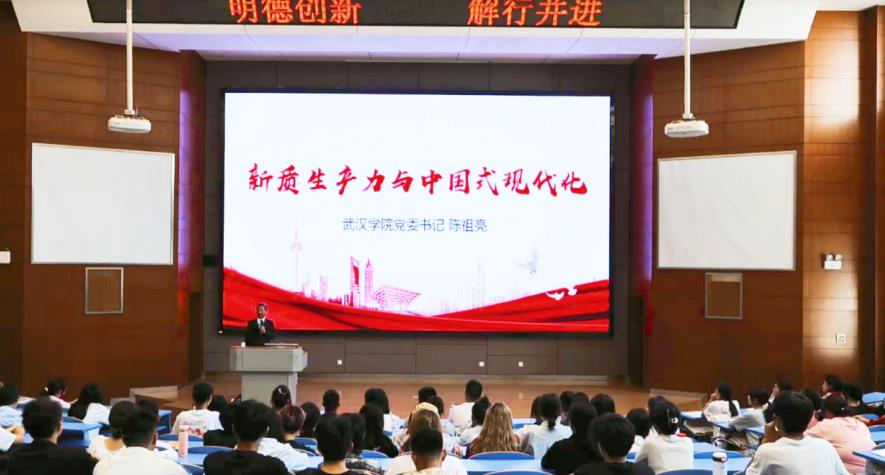 10月11日,PG电子官方网站第七期“解行中国”系列课程在中2103学术报告厅隆重开课,校党委书记陈祖亮教授就《新质生产力与中国式现代化》主题为学生带来一场精彩的学术报告。教务处处长韦玮、副处长马光菊参加开课仪式。