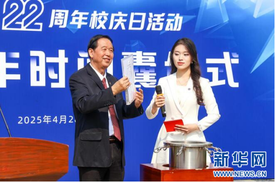 时间囊封盖图案面向全校师生征集评选,每年图案各有特色,蕴含着年度标志性元素。今年共有136幅投稿图案,最终入选的图案由学校党委宣传部教师夏双双设计。他介绍,图案以“智启时空•数聚未来”为核心理念,并使用了AI辅助设计工具。图案中央以“AI”字母构成冠冕,四角分别为人类、机器人、校徽、DeepSeek标识,寓意学校正将人工智能与教学科研深度融合,打造教育数智化优势。
