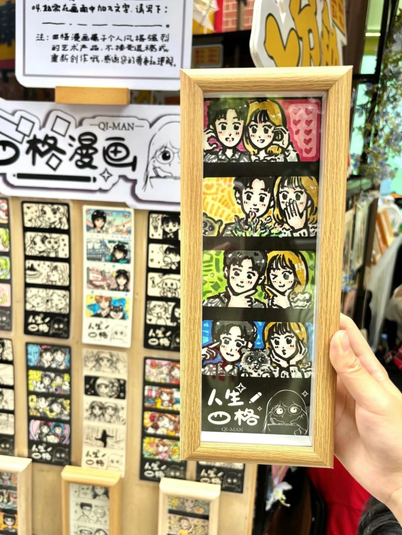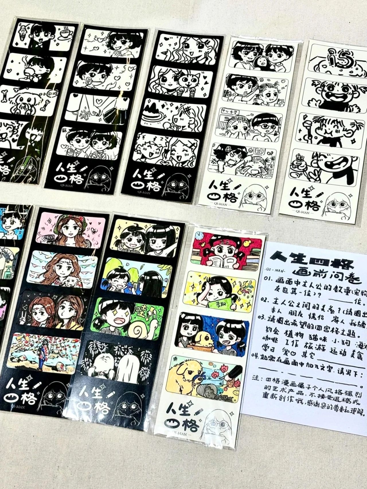 “人生四格”漫画究竟是什么?据王浩介绍,顾客只需填写一份问卷,选定画中人物、人物关系及四个格子的主题。画师则依据问卷信息及顾客本人(或提供的照片),将四个具有纪念意义的场景以漫画形式画出来。