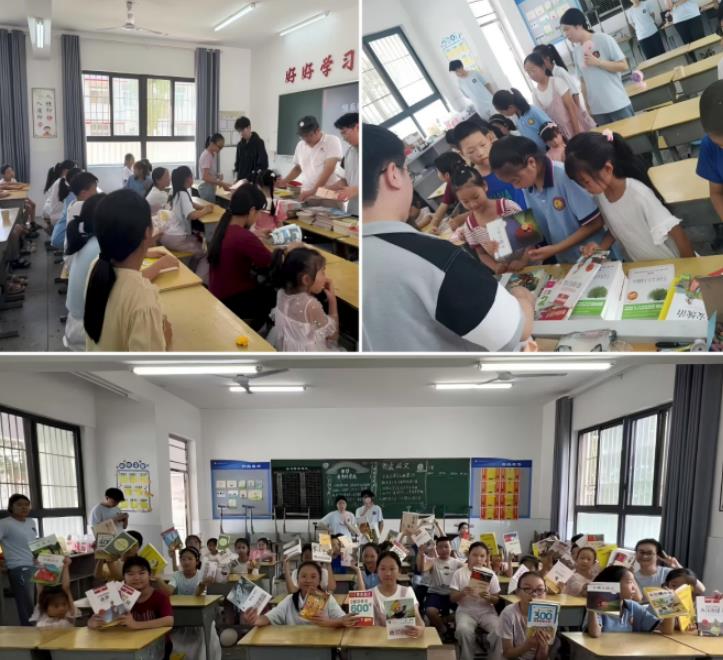 活动当日,校友代表们向卧伏中心小学捐赠书籍百余册及其他教学用品,书籍涵盖经典文学、科普百科、绘本故事等,都是经过校友们精心筛选,确保内容积极向上、符合小学生阅读需求。