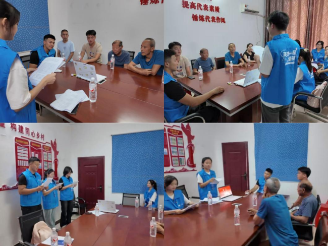 抵达当日,宣讲团与青山村“两委”工作人员在村委会会议室围坐交流,聚焦乡村发展中的“急难愁盼”问题展开调研交流。双方围绕村内旅游业规划,研究如何整合本地红色记忆与生态资源,打造“可游、可学、可忆”的旅游项目;针对交通道路建设,团队详细了解村内主干道修缮进度与产业路规划,为后续资源对接和基础设施建设提供思路。队员们还结合专业知识,就老年人养老和村校联动等方面提出建设性意见。交流中,村内老党员代表现场寄语青年,勉励大家铭记红色历史,勇担时代使命,让红色基因在传承中绽放新光彩。