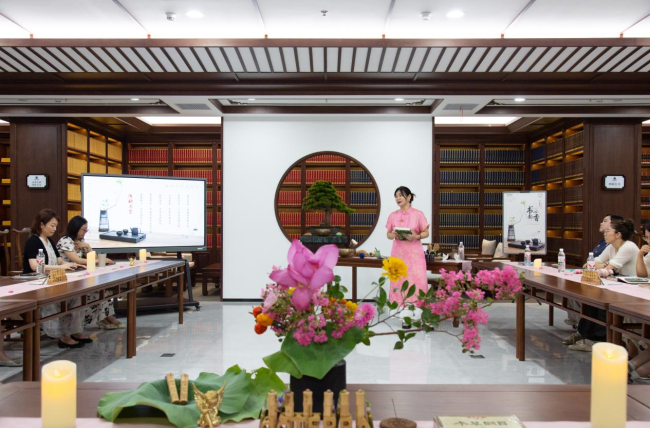 本次活动由学校图书馆精心策划主办,旨在通过深度利用馆藏特色文化空间,以雅集的形式,为教师们献上一份超越传统物质层面的精神滋养与文化礼赞。活动由图书馆馆长温爱莲主持。