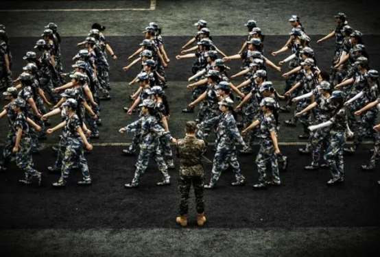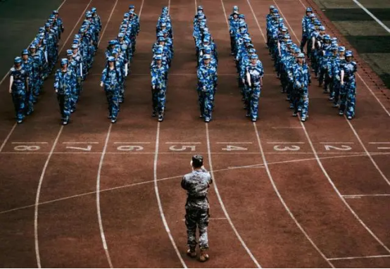 在教官铿锵的口令声中