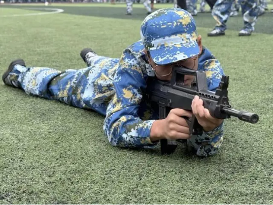 同学们跪姿瞄准或卧姿射击