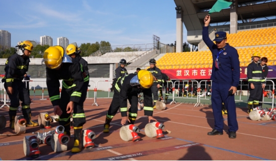 本届大赛由武汉市消防救援支队、湖北省高等学校安全保卫协会、武汉理工大学及洪山区消防救援大队联合主办,旨在检验高校消防安全提升工程成效,推动应急力量专业化、职业化发展。比赛共设置原地穿戴全套灭火防护装备操、电子灭火器灭火操、一人三盘水带连接操、宿舍防火检查、消防业务理论考试等10个竞赛项目,涵盖灭火救援与防火检查两大能力维度。