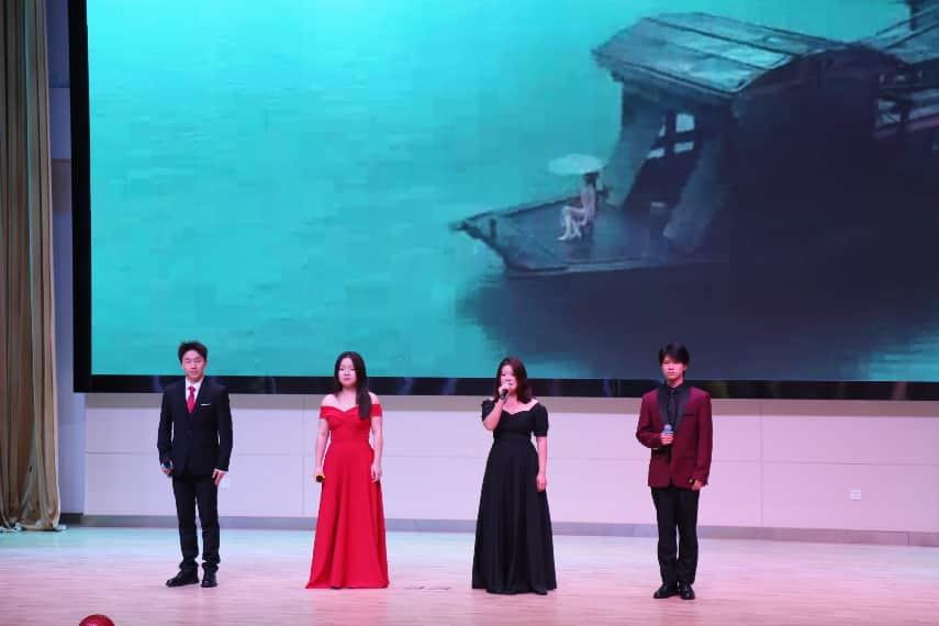 校党委书记陈祖亮教授莅临现场并发表讲话。他表示,所有节目都十分精彩,选取的都是中华爱国经典诗词,并能结合团队特点进行形式上的创新,以丰富多彩的表现形式充分展现出同学们蓬勃向上的精神风貌。他向同学们提出三点希望:一是要牢固树立爱国之情,以先烈、归国科学家和普通劳动者为榜样,坚定社会主义方向,听党话、跟党走,将青春融入爱国行动;二是要牢固树立报国之心,不做“口头爱国者”,既要锤炼品德、追求思想进步,也要夯实能力根基,学好课堂知识、提升应用能力,拓展综合素质;三是要牢固树立强国之志,深刻认识社会主义现代化强国的奋斗目标,牢记“国家好,个人才会好”的道理,以强国建设主力军的担当与党同心同行,在校打下坚实基础,为中华民族伟大复兴贡献力量。