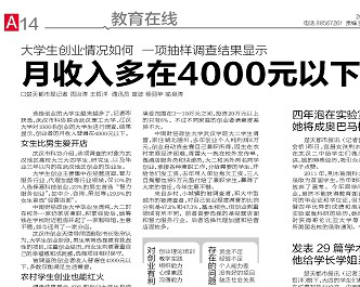 选择创业的大学生越来越多了。记者昨获悉,武汉市科协联合武汉理工大学、江汉大学对1000名创业的大学生进行调查,结果显示,创业者的月收入普遍在4000元以下。