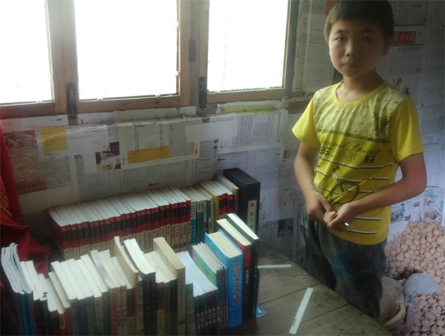 彭军为学生们建立的“读书点”相当于一个小型阅览室,地点设在学生家里,由指定的学生进行管理,其他学生都可以就近借阅。本次共建立“读书点”7个,其中新场小学附近3个,以新场小学为中心较远的走马岭村2个,大骅间村和三岔坝村各1个。“读书点”共藏书千余册,均是社会爱心人士了解到彭军的资教事迹后捐赠的。书籍类型涵盖童话类图书,如《绿野仙踪》、《睡美人》;国学类读物,如《论语》、《唐诗宋词》;国内外名著,如《傲慢与偏见》、《骆驼祥子》;还包括一些学前识字、绘图、算数类书籍。